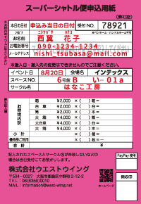 | あらかじめ、ウエストウイング受付にて申込書とタックシールを受け取り、必要事項を記入後にお荷物をお持ちいただくと受付がスムーズに行えます。 |